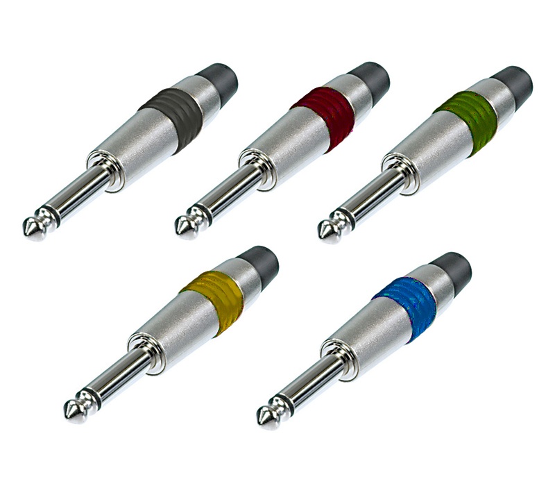 Jack mono de 1/4" ergon?mico, con goma de diferentes colores