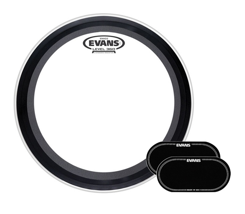Incluye parche de bombo Evans EMAD2 Clear de 22" y 2 protectores