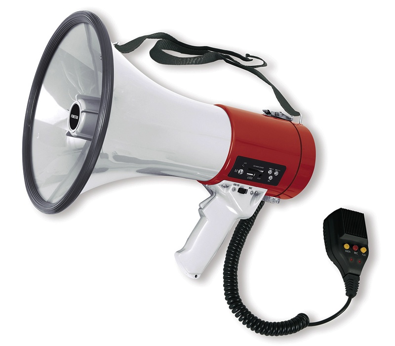 Meg?fono con sirena, reproductor USB/SD/MP3, grabador de 15 segundos,