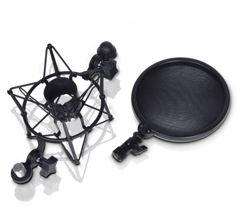 Soporte anti vibraciones con pantalla anti viento para microfonia de estudio