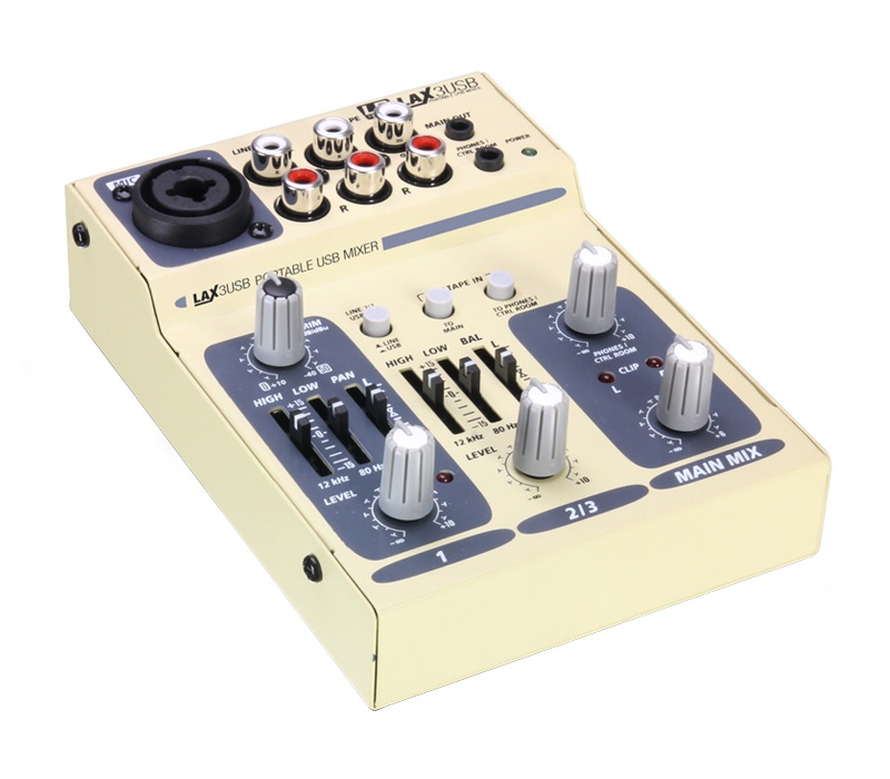 Mesa de sonido de 3 canales con USB